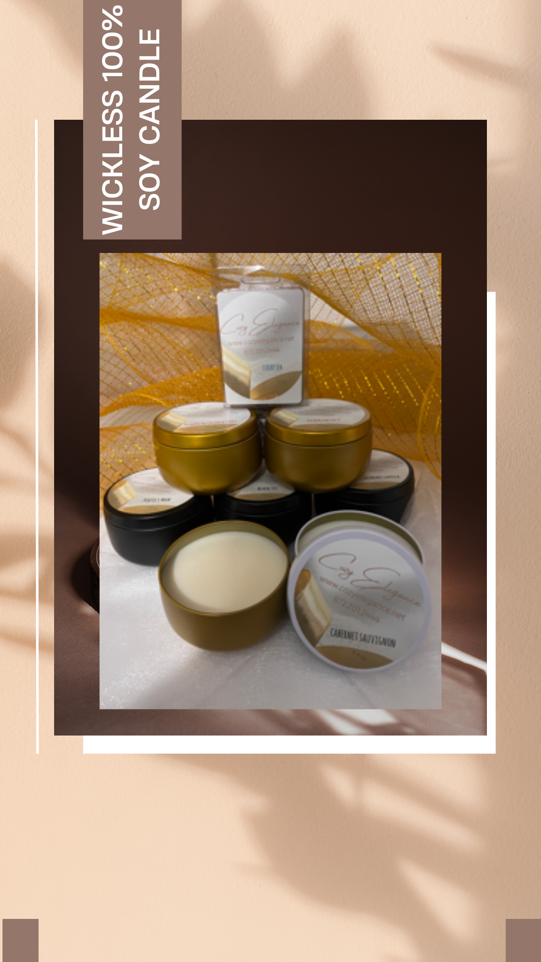 Our Elegant Collection features refined, hand-poured, wickless 100% soy candles and wax...